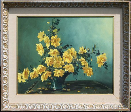 ENGELHARDT, Edna Palmer, (American, 1897-1991): ''Old Fashioned Yellows'', OIL/Canvas, 16'' x 20'', signed, titled verso, carved frame, 22'' x 25 1/2''.