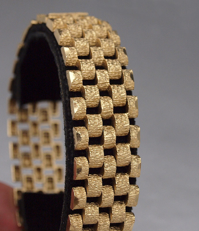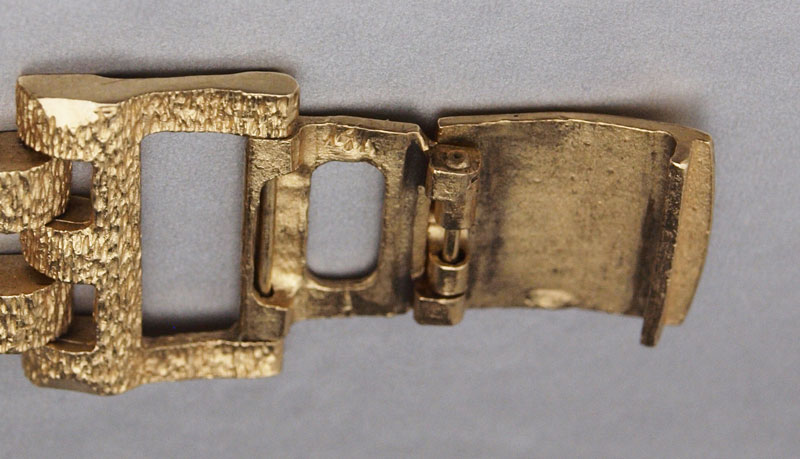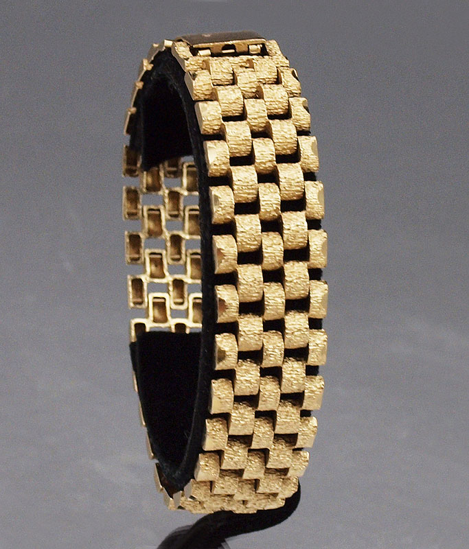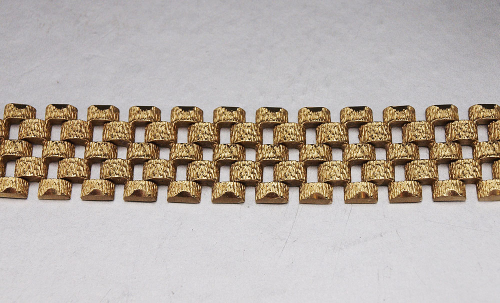 14K GOLD BRACELET: A wide 14K yellow gold bracelet, men's or ladies. Approx. 36.7 grams. 8 /2''l. 5/8'' wide.