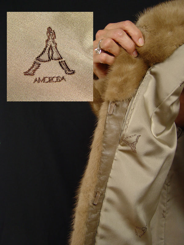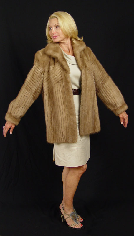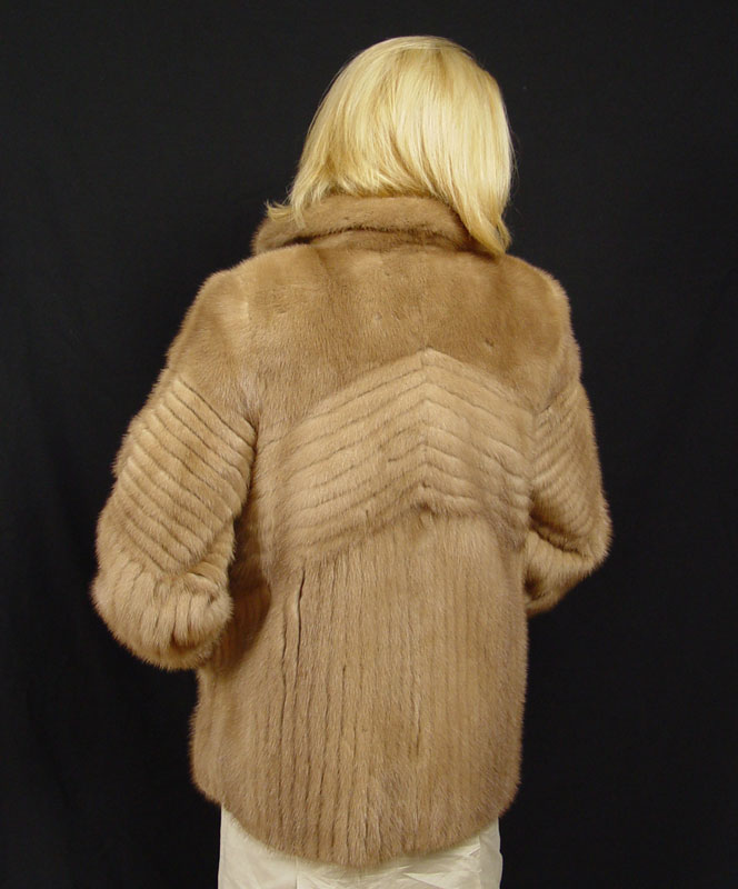 CHEVRON STRIPE DESIGN MINK JACKET: Unusual design in car length coat, Amorosa labeled lining. 30''l.