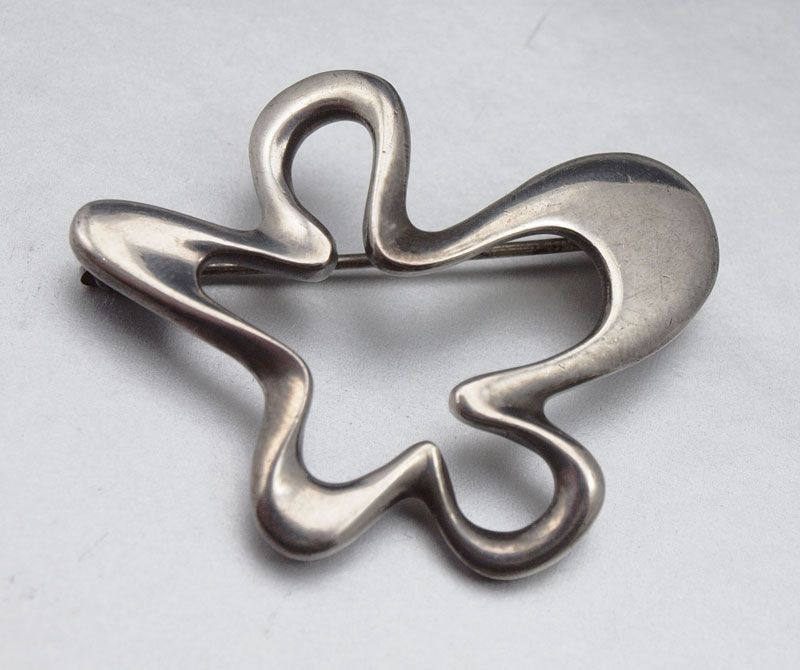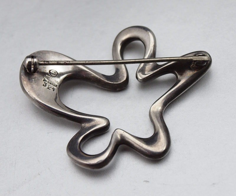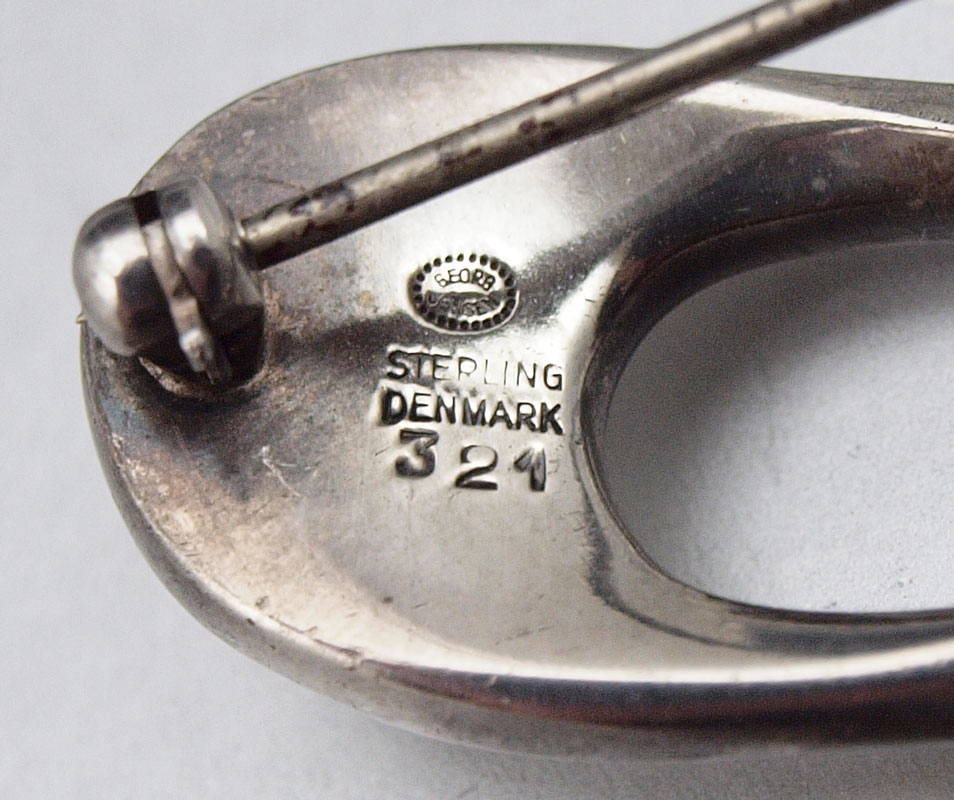 GEORG JENSEN STERLING BROOCH: Design No. 321, by Henning Koppel. 1 3/4'' l. Beaded oval Georg Jensen hallmark along with Sterling Denmark 321. .52 troy oz.