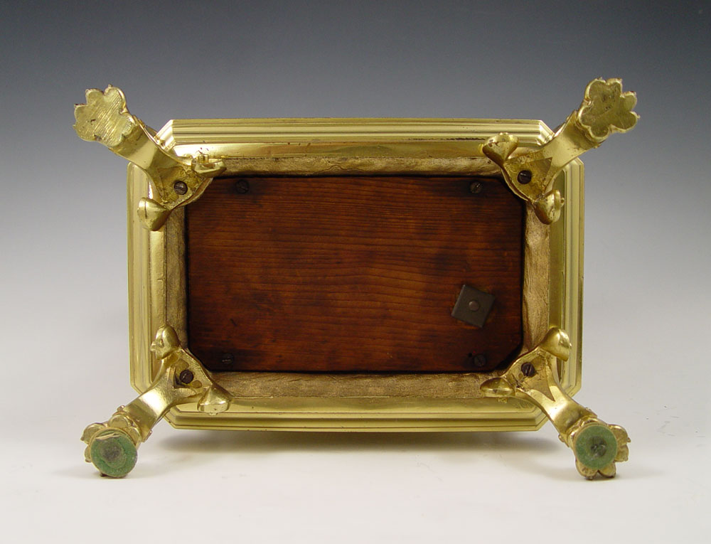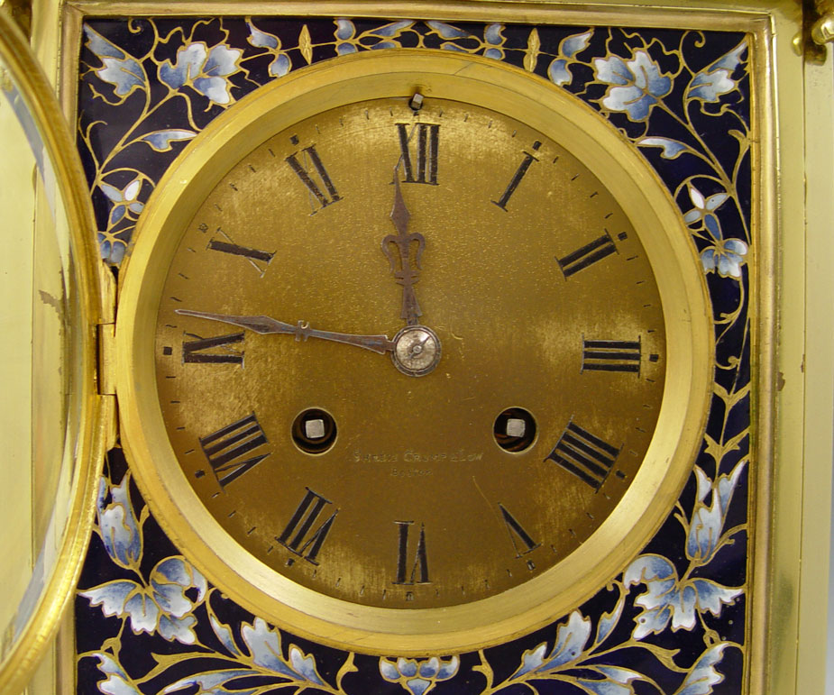 CONDITION: Note replaced back bezel, loss of finish on back of clock, very minor nicks to enamel.