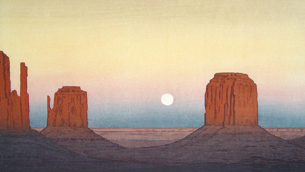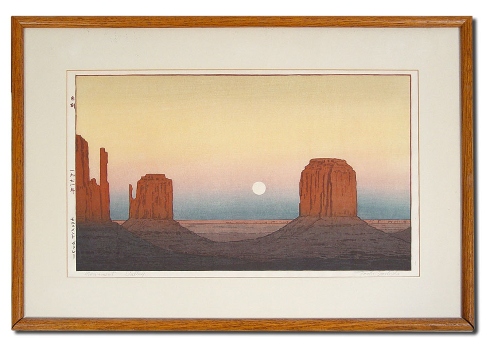 YOSHIDA, Toshi, (Japanese, 1911-1995): ''Monument Valley'', Woodblock, sight size 12 1/4'' x 20 1/2'', signed framed, 19'' x 27''.