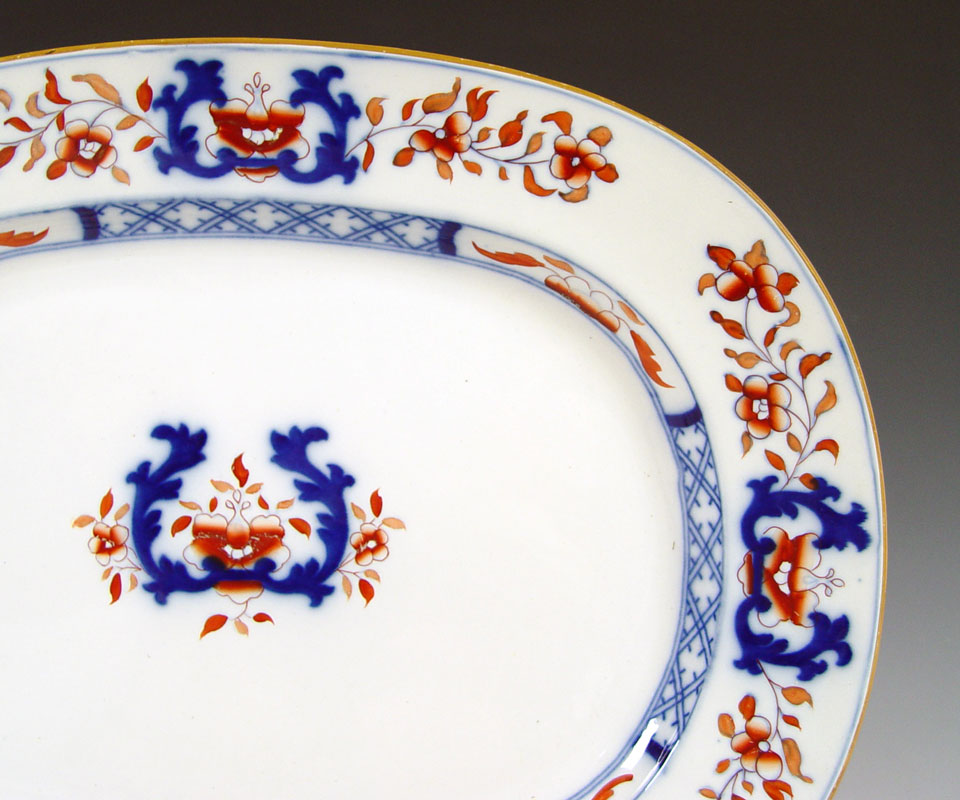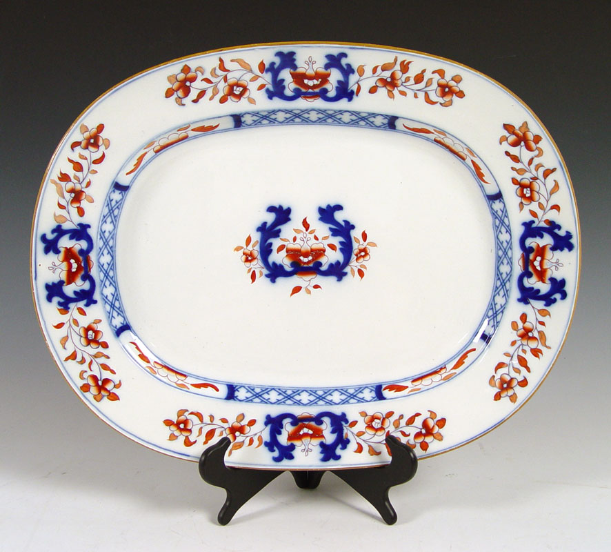 OLD ENGLISH NEW STONE IRONSTONE COBALT AND IRON RED PLATTER: The colors of Imari, 9 1/2'' x 7 1/2''.