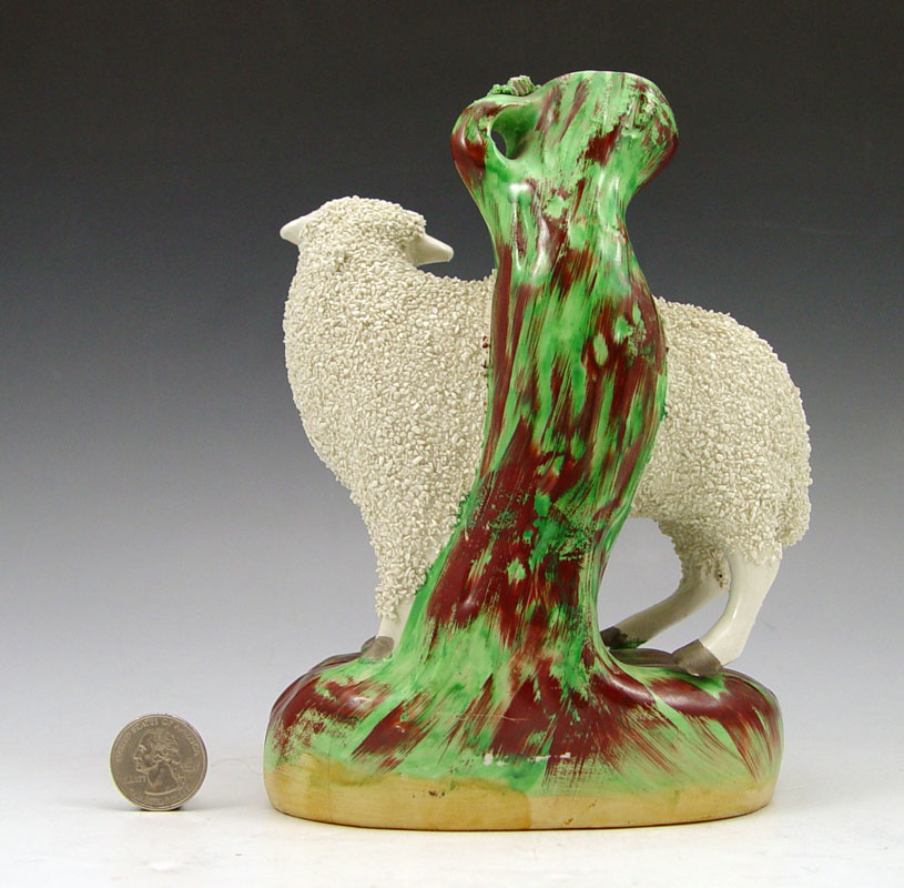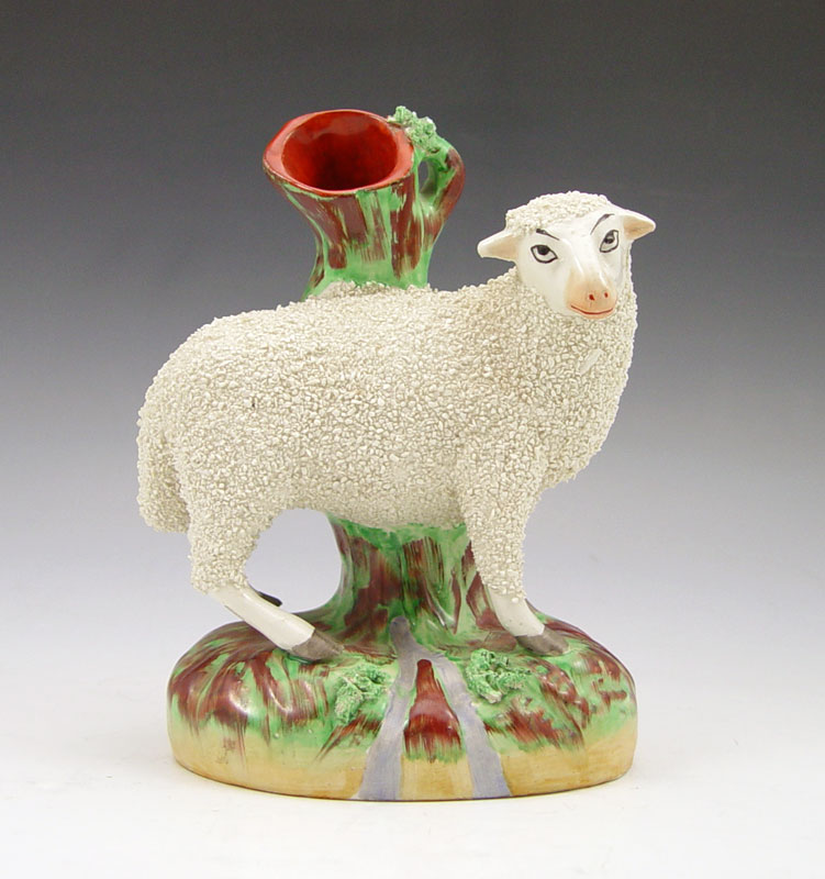 STAFFORDSHIRE LAMB FIGURAL SPILL VASE: 7 1/2'' x 4''