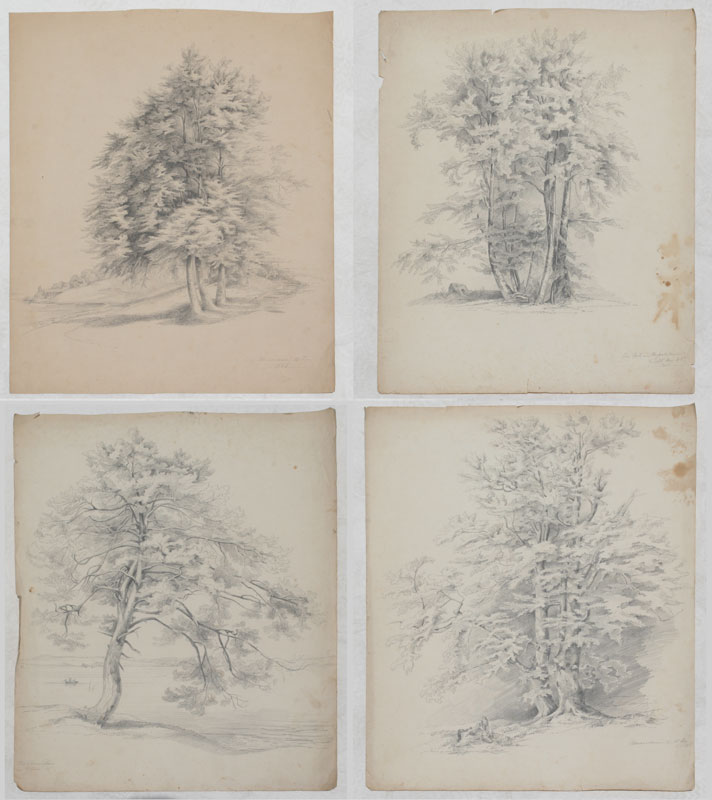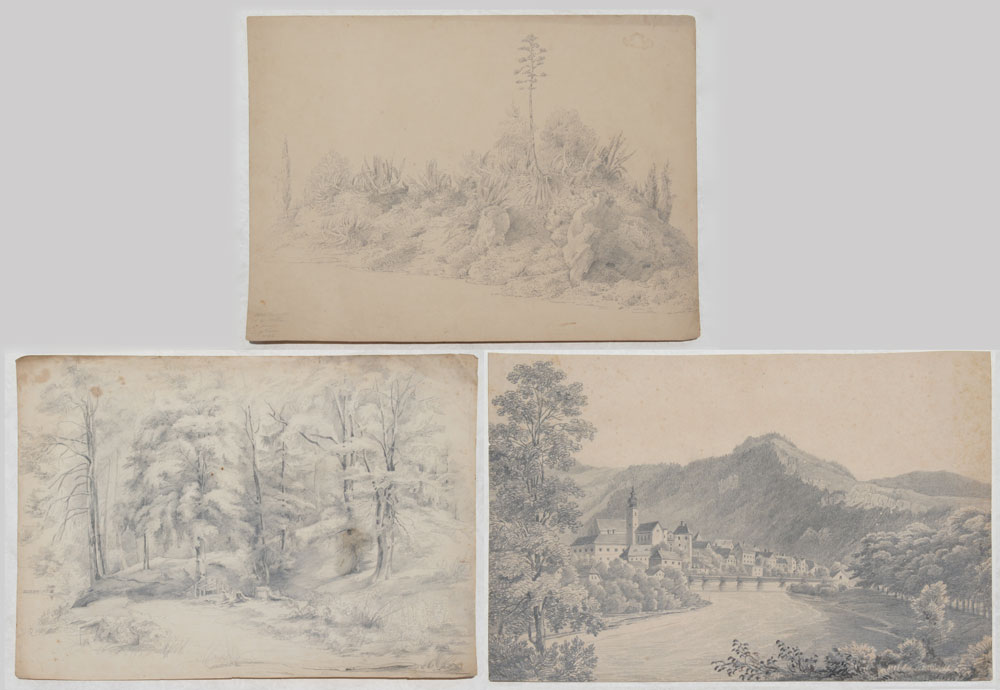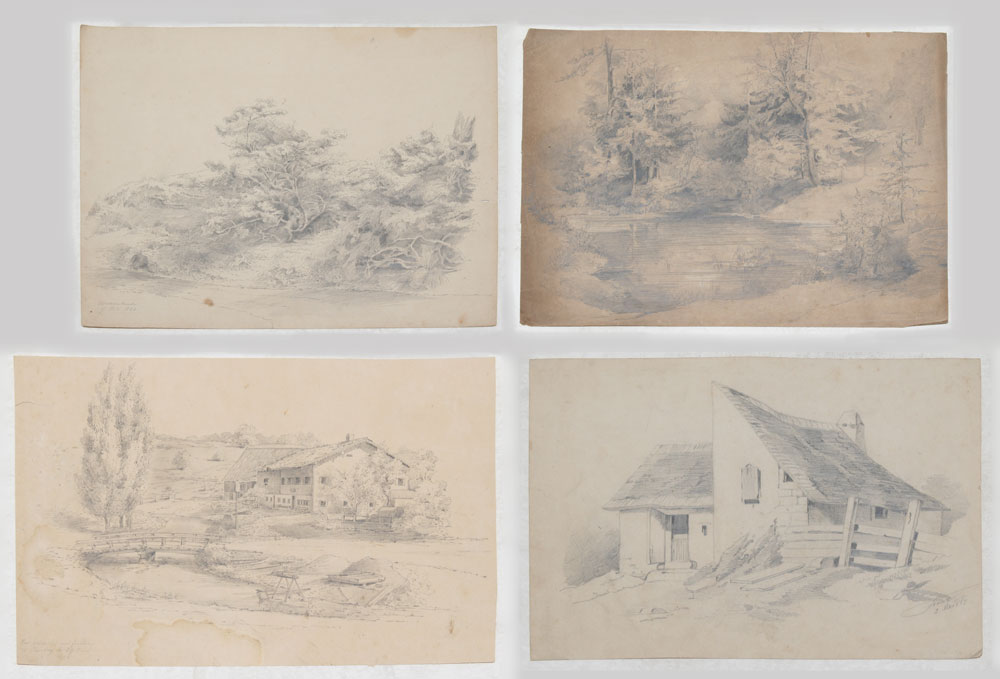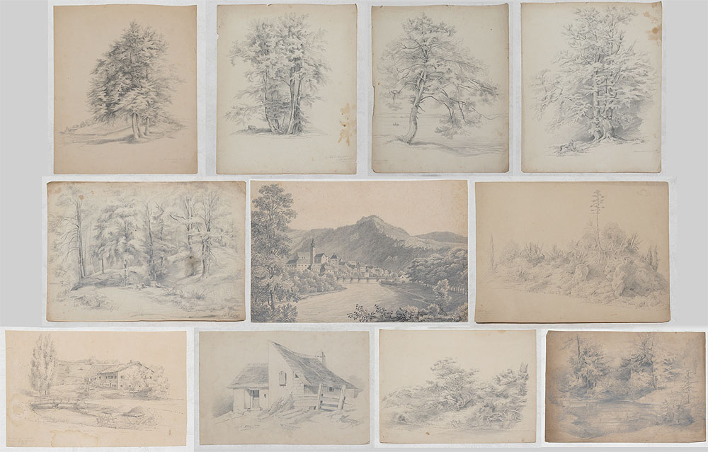 11 PC GROUP OF 19TH C. GERMAN DRAWINGS: All unsigned, of exceptional quality, most are titled in German and dated, largest being 16'' x 20'' approximately.