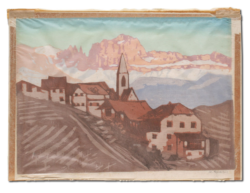 SPARER, Max, (Austria, 1886-): European Mountain Village Landscape, Woodcut, 14 1/2'' x 19 1/2'', signed, unframed.