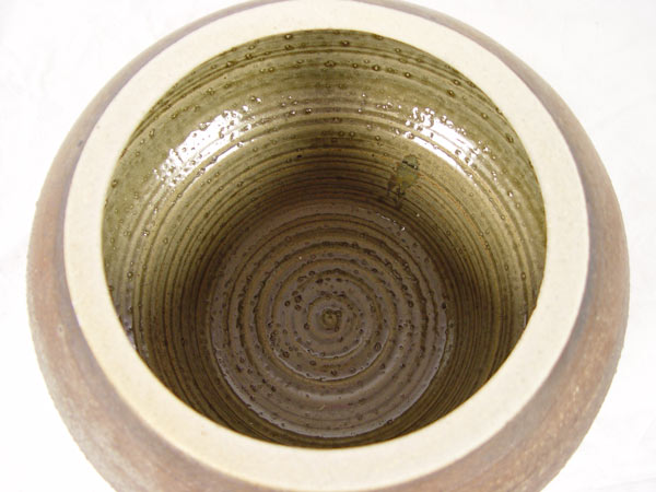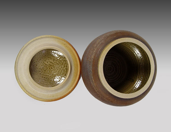 KARNES, Karen,(American, 1925): Large Lidded Glazed Stoneware Vessel, 11 1/2'' h. with lid, 13'' diameter at widest point, glazed interior, stamped KK marking to base.