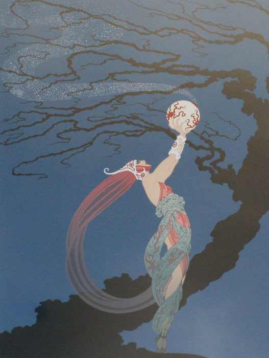 ERTE, (Russian, 1892-1990): ''Fireflies'', Serigraph, sight size 29'' x 20 1/2'', pencil signed and numbered 186/300, receipt included, custom black frame and matting, 41 1/2'' x 32''.