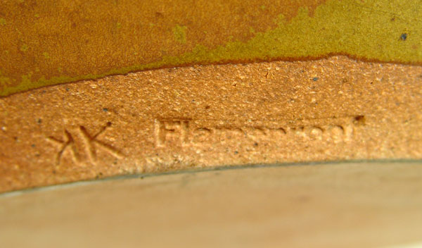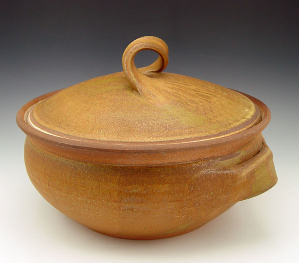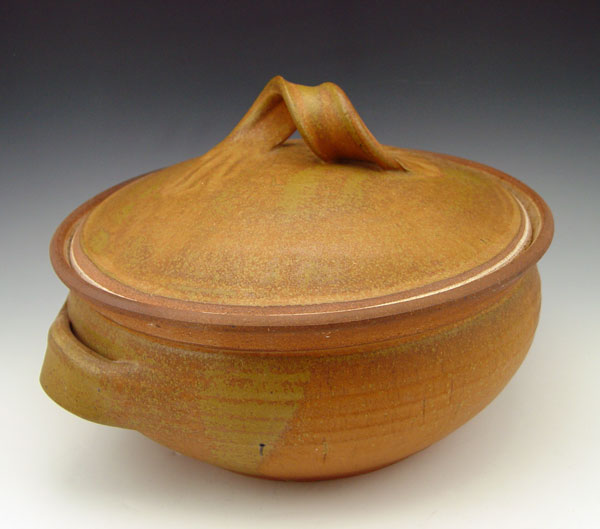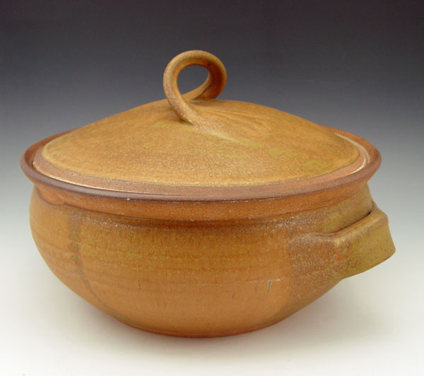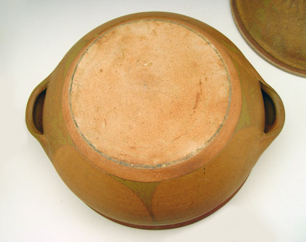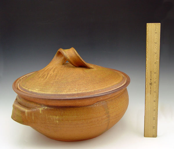 KARNES, Karen, (American, 1925): Handled Covered Vessel, 9'' h., 13 3/8'' w., stamped KK. Est. $1200/1800**