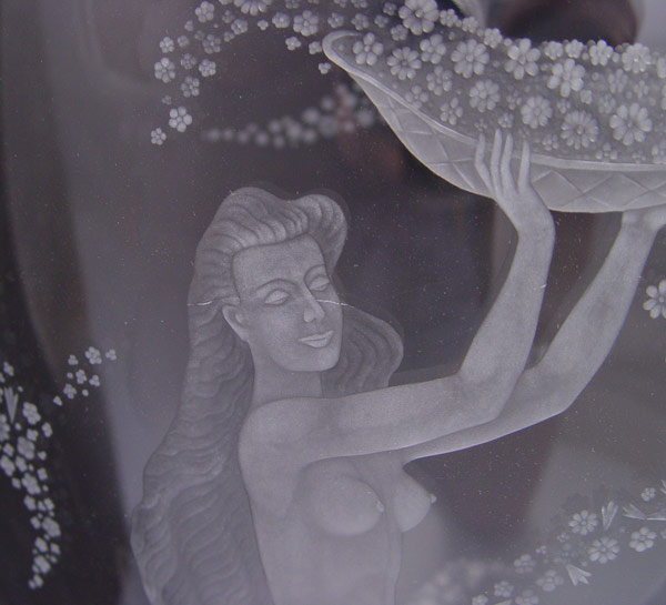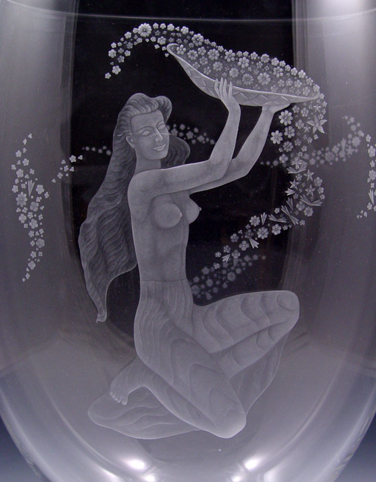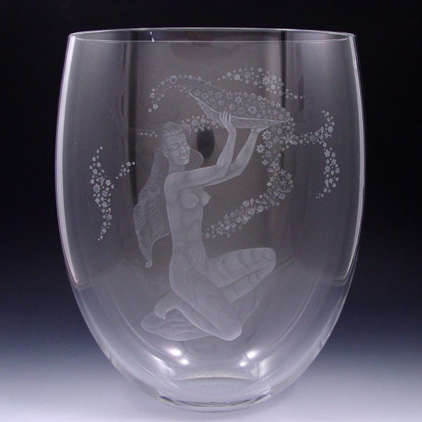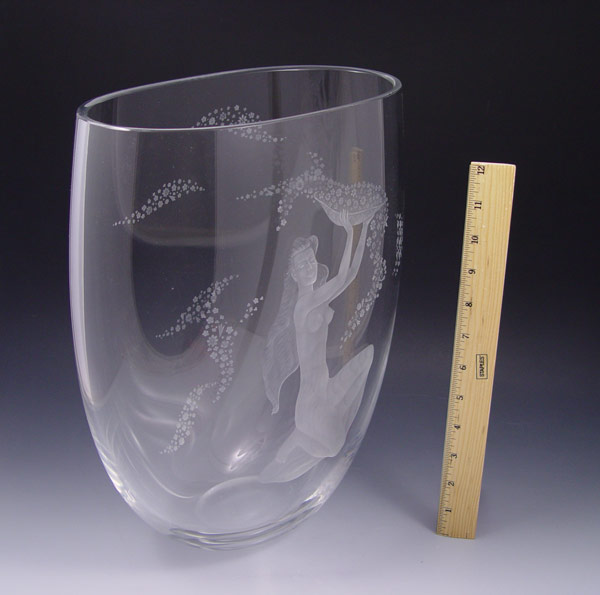 PALMQUIST FOR ORREFORS ETCHED GLASS VASE: 14'' x 10 1/2'' wide
