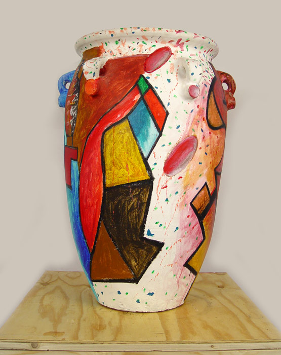 SCANGA, Italo, (American, 1932-2001): Painted Vase, 34'' h., signed and dated 1989, 18'' dia., sold with custom $300.00 shipping crate.