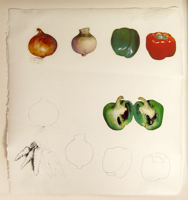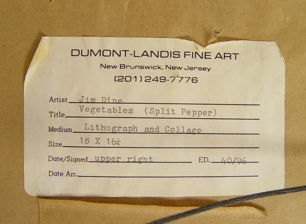 DINE, Jim, (American, 1935-): Split Pepper, Collage with Lithograph, 18'' x 16'', pencil signed numbered 40/96, framed, 23'' x 21'', float mounted.