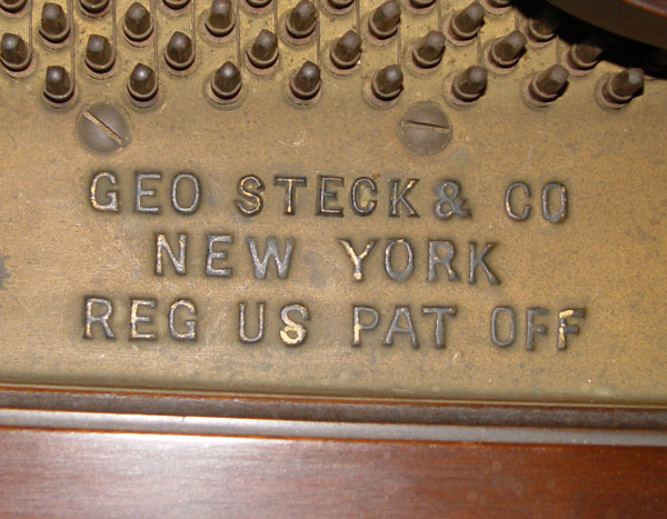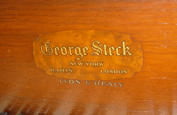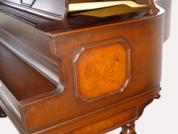 C. 1900 GEORGE STECK ROSEWOOD BABY GRAND PIANO: Serial number 22400, dates to 1900. Rosewood case with floral inlay on music rack and panels in side. Well marked George Steck & Co. Aeolian. Measures approx 38'' h. x 55 1/2'' x 60''.