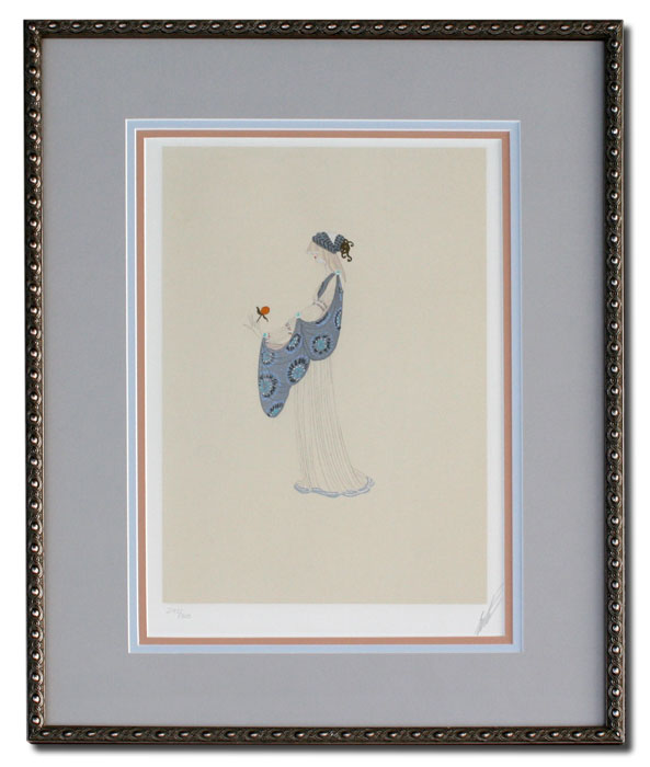 ERTE, (Russian, 1892-1990): Lady with a Rose, Serigraph, numbered 275/300, pencil signed, 19 1/4'' x 15 3/8'', 15'' x 10'' sight size, framed 22'' x 17'', 1985 F.A. CORP blindstamp left margin.