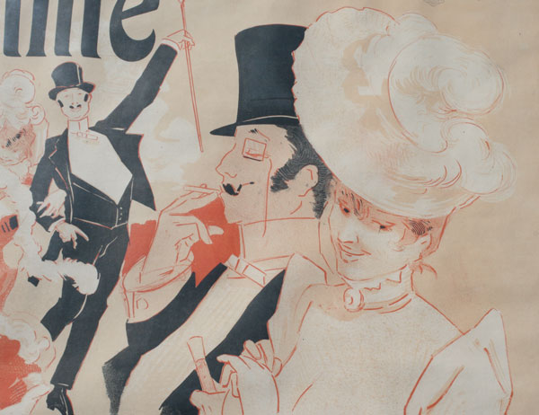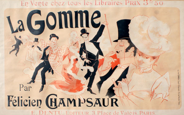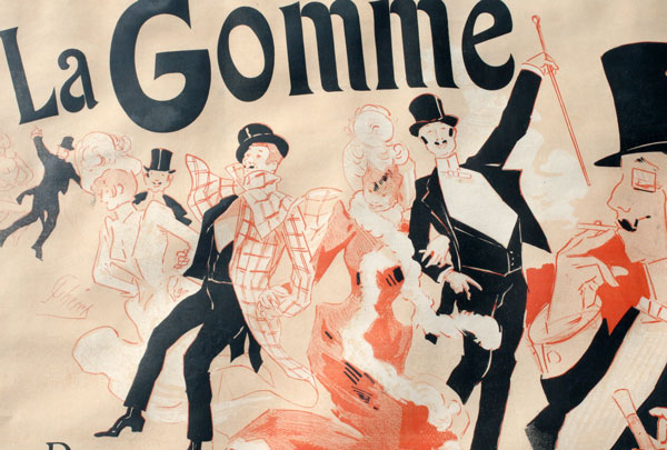 'LA GOMME'' VINTAGE FRENCH POSTER BY JULES CHERET: Sight size 33'' x 48'', framed 36 1/4'' x 51 1/4''
