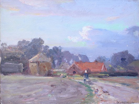 COOPER, Colin Campbell, (American, 1856-1937): European Village, Oil/Board, 9 1/4'' x 12 1/4'', signed lower right, gold painted frame, 13 1/2'' x 16 1/2''.