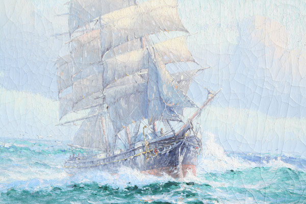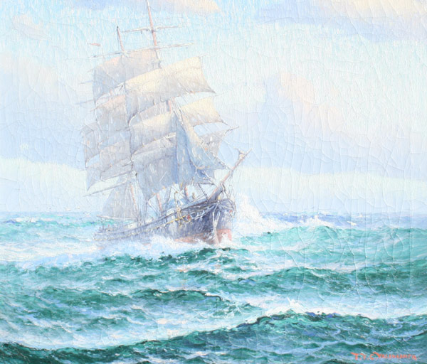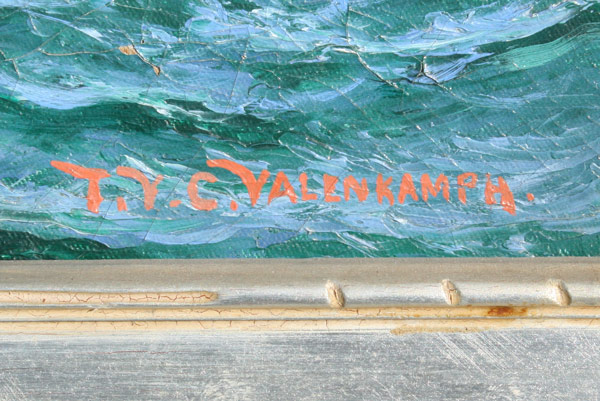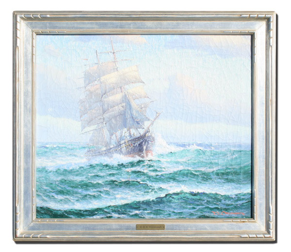 VALENKAMPH, Theodore Victor Carl, (American, 1868-1924): ''Three Masted Ship on High Seas'', OIL/Canvas, signed lower right, 24'' x 28'', carved and gilded silver frame with wear, 29 1/2'' x 34''. Est. $800/1200**