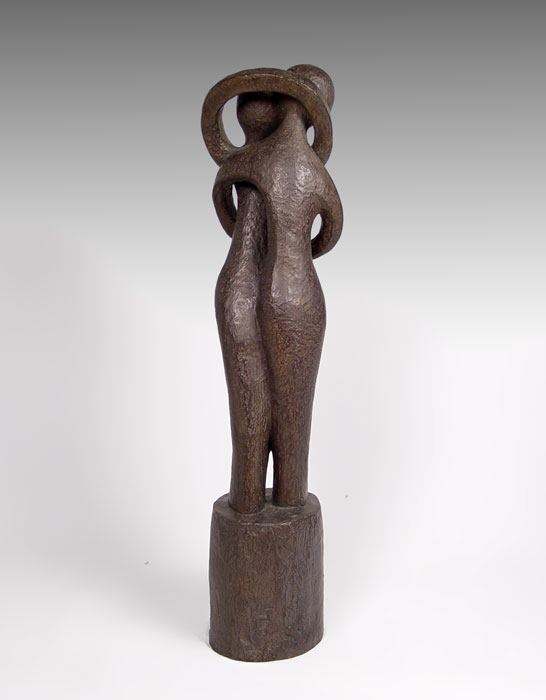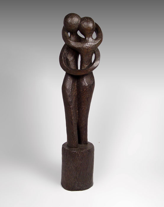 LARGE MYSTERY MODERN SCULPTURE OF LOVERS: Paint over Resin/Terracotta, 54'' h., no visible signature.