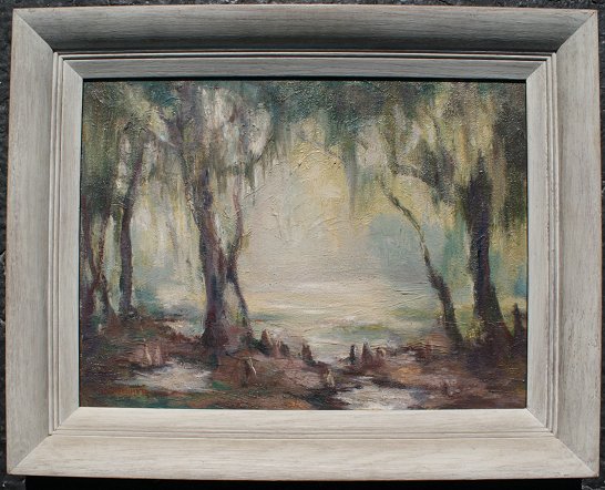 LINDENMUTH, Tod, (American, 1895-1976): ''Cypress Swamp'', OIL/Masonite, 12'' x 16'', signed, framed, 15 1/2'' x 19 1/2'', titled verso.