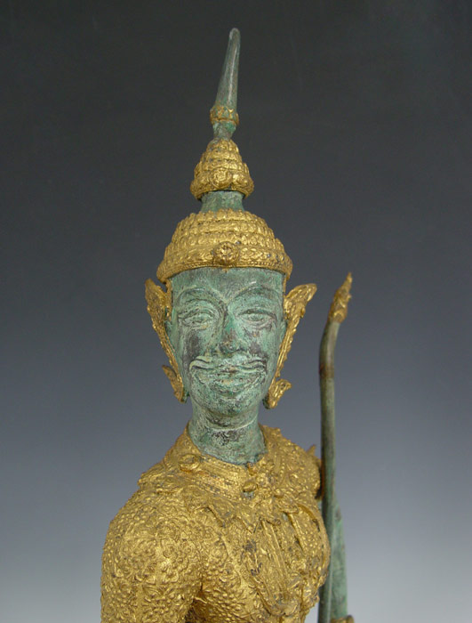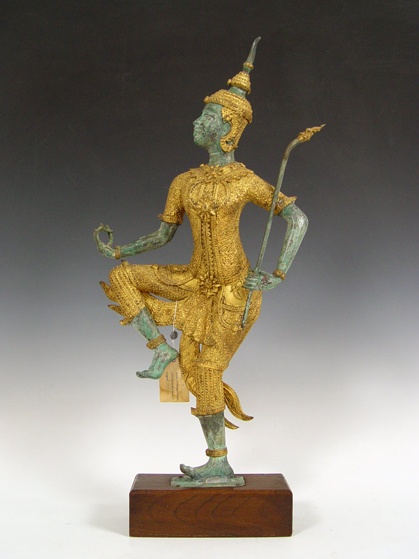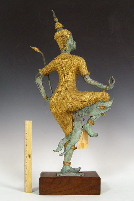 CONTEMPORARY BRONZE THAI STATUE: Patinated finish, 15'' tall.