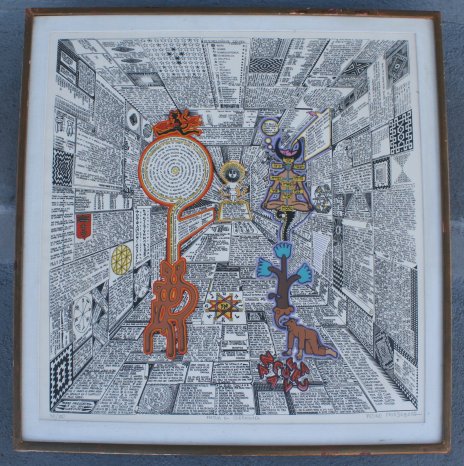 FRIEDEBERG, Pedro (American, 1937-): ''Mattias en Cuernavaca'', Serigraph, sight size 22 1/4'' x 22 1/4'', pencil signed lower right, numbered 40/100 lower left, signed and titled, gold frame with wear, 25 1/2'' x 25 1/2''.