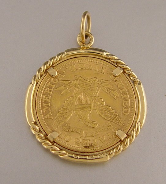 14K COIN FRAME US 5 DOLLAR LIBERTY: 14K yellow gold frame contains one 1899 US 5 Dollar Liberty coin. Frame weight: 3.4 grams Approx.