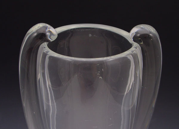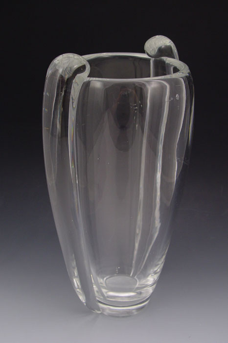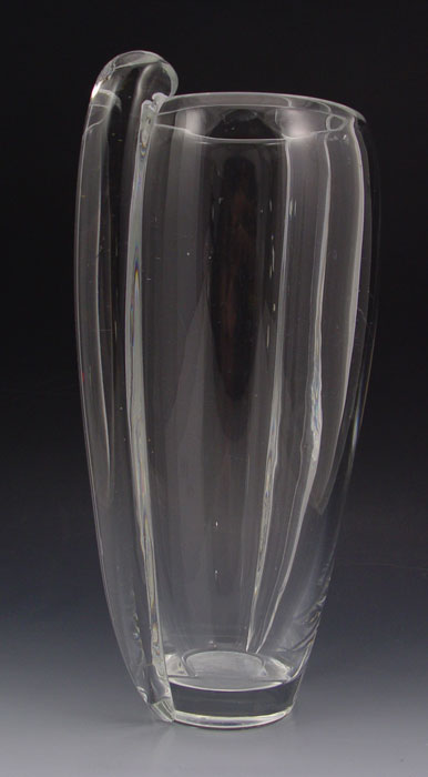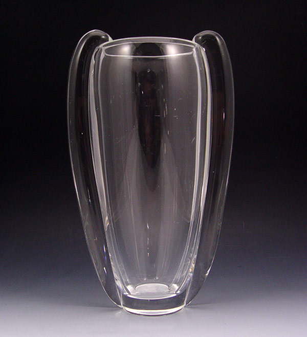 STEUBEN CRYSTAL ART GLASS VASE: Signed on base, approx. 12 1/4''h., 7'' wide, 4'' opening.