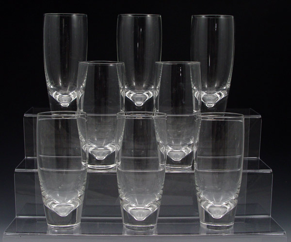 8 STEUBEN CRYSTAL TUMBLERS: 6 1/2'' tall, signed Steuben.