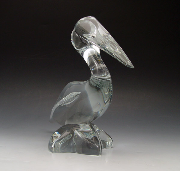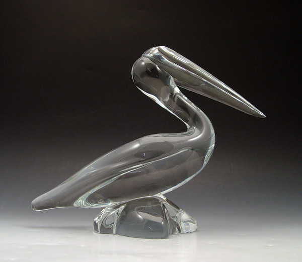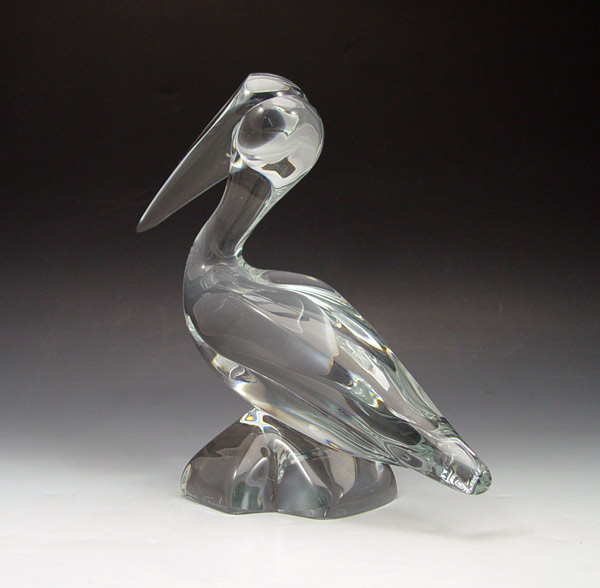 LARGE DAUM FRENCH CRYSTAL PELICAN: 9''h. x 12''l.