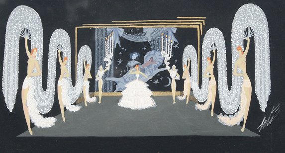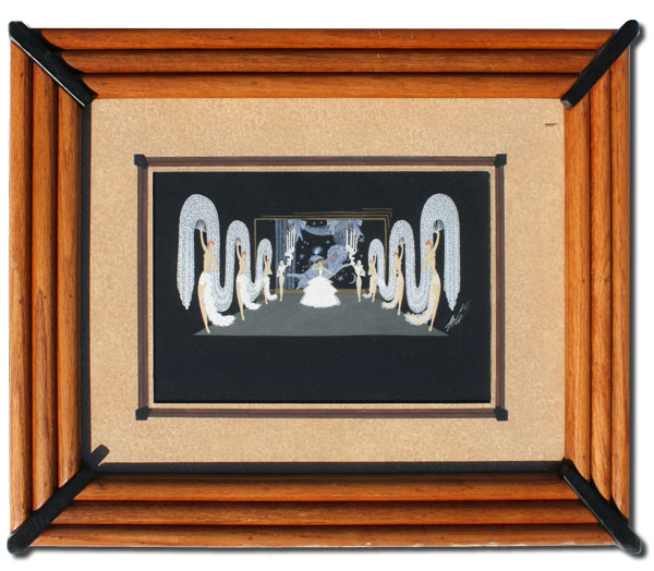 ERTE, (Russian, 1892-1990): Follies / Le Lido set design, Gouache, 7 1/4'' x 10 1/2'', signed, stamped verso Composition Original, framed, 16'' x 20'', hinge mounted.