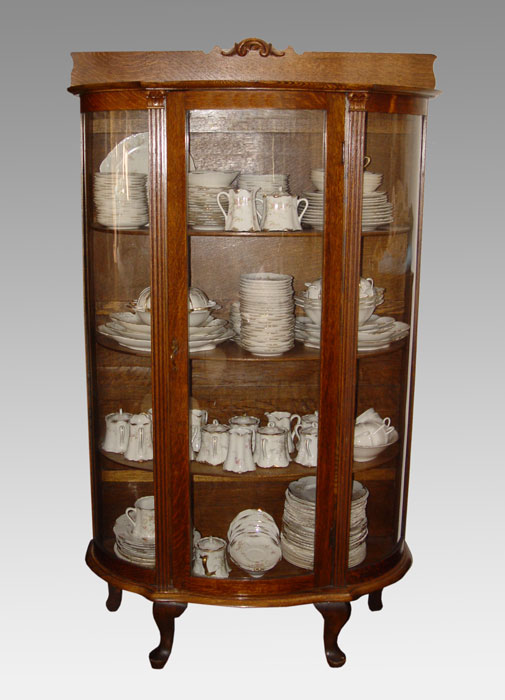 OAK CARVED BOWFRONT CHINA CABINET: 65 1/2'' x 35'' x 16''