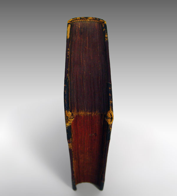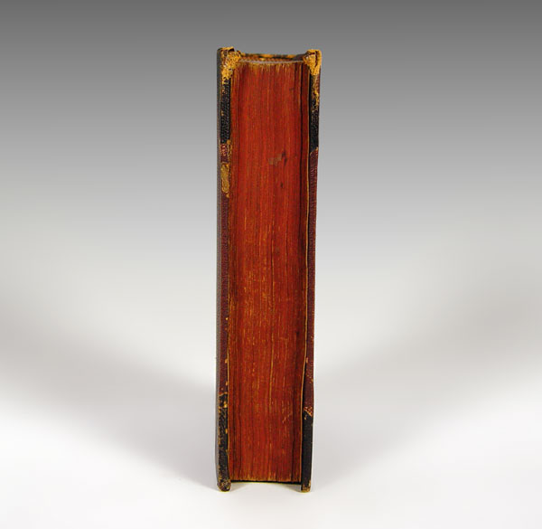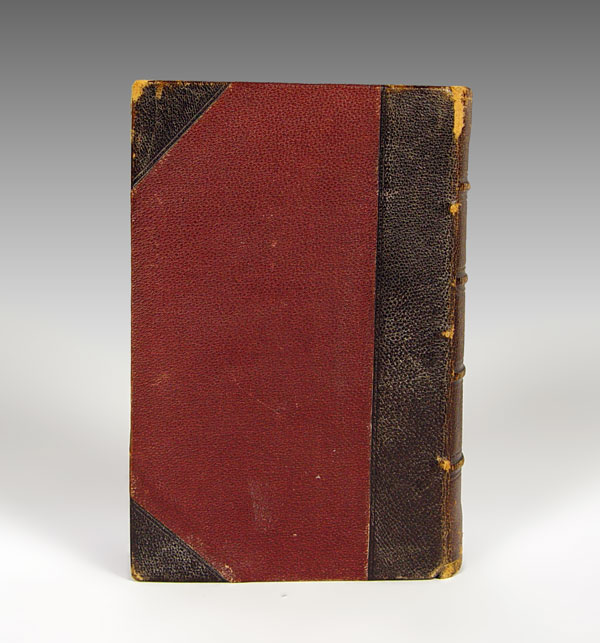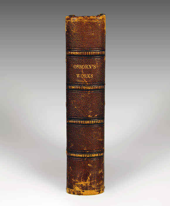 OSBORNE, Francis, (British, 1593-1659): THE WORKS OF FRANCIS OSBORN ESQ; DIVINE. HISTORICAL. MORAL. POLITICAL. IN FOUR SERVERL TRACTS. VIZ. 1. ADVICE TO A SON, IN TWO PARTS. 2. POLITICAL REFLECTIONS ON GOVERNMENT OF THE TURKS, &C. 3. MEMOIRES ON Q. ELIZABETH AND K. JAMES. 4. A MISCELLANY OF ESSAYS, PARADOXES, PROBLEMATICAL DISCOURSES, LETTERS, CHARACTERS, &C. THE SEVENTH EDITION by Francis Osborn. London: Printed for R.D. and are to be sold by Allen Bancks., 1673. Octavo, bound in _ 19th century morocco & pebbled cloth, all edges red [x], 1-127, [xv], 145-250, [xii], 263-408, [xviii], 409-466, [xvi], 467-547, [xxiv], 549-573, [vi], 581-602, 503-566 [sic], 667-695 pp. Minor cover rubs and scuffs; otherwise clean and tight.
