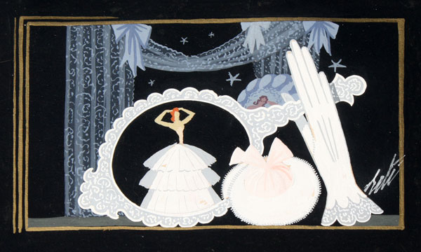 ERTE, (Russian, 1892-1990): Follies / Le Lido set design, Gouache, 7 1/4'' x 10 1/2'', signed, stamped verso Composition Original, framed, 16'' x 20'', hinge mounted.