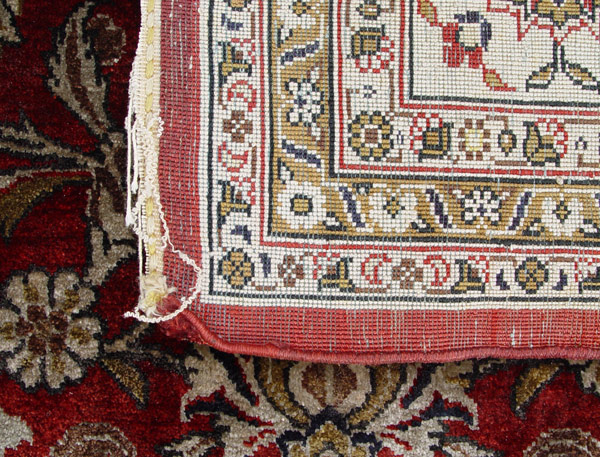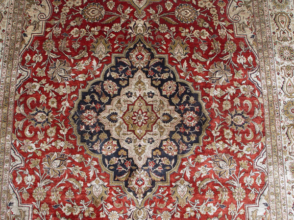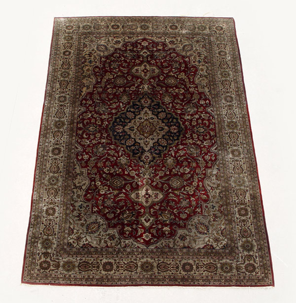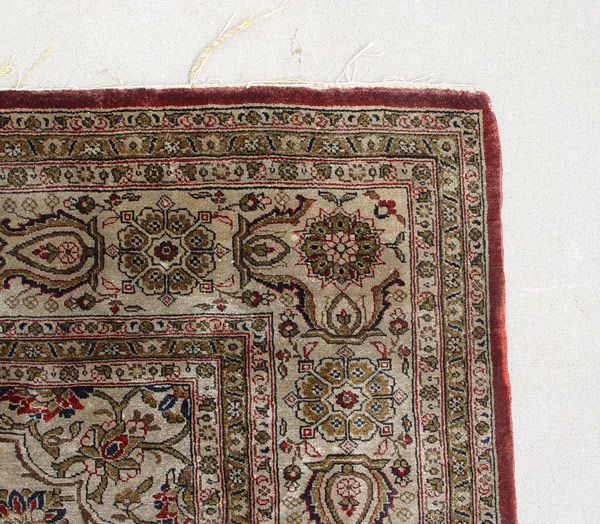 SILK HAND TIED CARPET: Silk and wool, approx. 7' 3'' x 4' 9''.