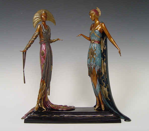 ERTE, (Russian, 1892-1990): ''Two Vamps'', Bronze, stamped 12/500, 1990 Sevenarts Ltd. London, sold with Erte signed certificate from Dyansen Gallery, 19 h. x 19'' base