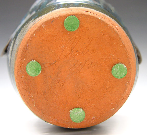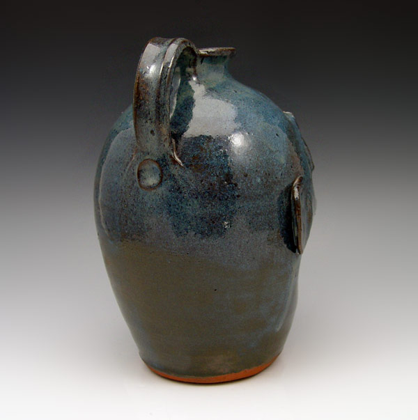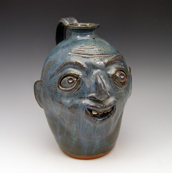 FOLK ART FACE JUG BY CHARLIE WEST: Deep blue glaze. Dated 1977.