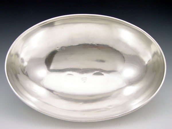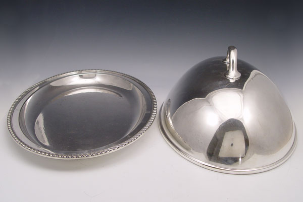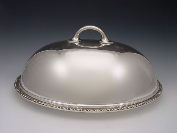 REED AND BARTON SILVER SOLDERED PLATTER AND DOME: Reed & Barton meat platter with dome cover. Platter marked 1325, 18'' x 13''. Dome marked 1320, 7 3/4 h. x 17'' x 12 1/4.