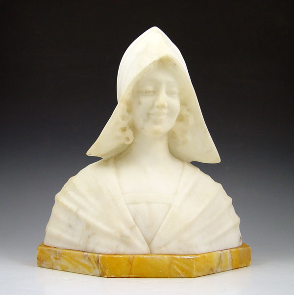 CAMBI, Alberto, (Italian, 19th century): Marble bust of young maiden, 11 3/4'' h. x 10 3/4'' x 5''