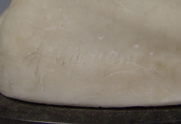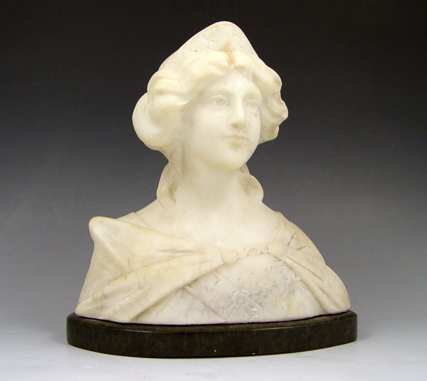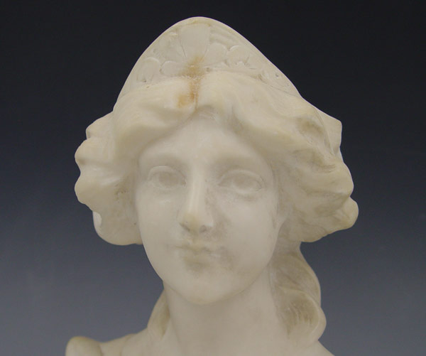 CIPRIANI, Adolpho, (Italian, 1895-1930): Alabaster bust of young maiden, 8 1/2'' h x 7 1/4'' x 4''