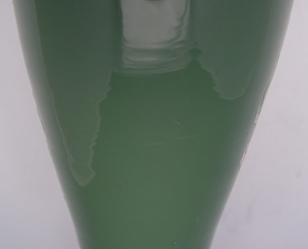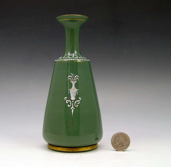 PAT SUR PAT GLASS BOTTLE VASE: European glass depicting an Art Nouveau maiden, 6 3/4'' tall.