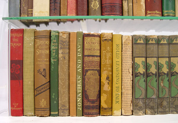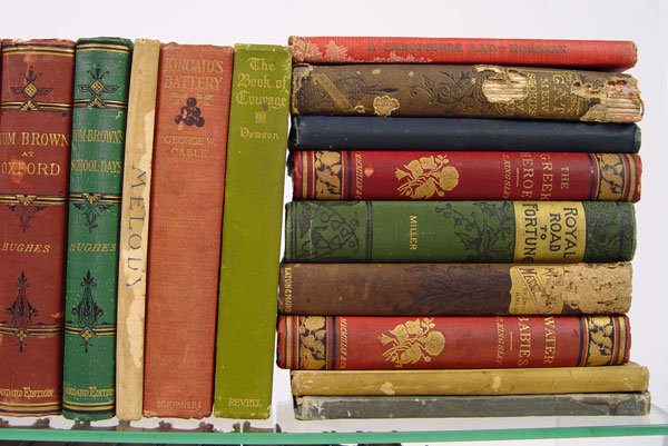 55 PIECE COLLECTION OF ANTIQUES BOOKS: Large collection of books by assorted authors in varying states of condition, some are first edition. Too many to list, hand written inventory available upon request via email or fax.