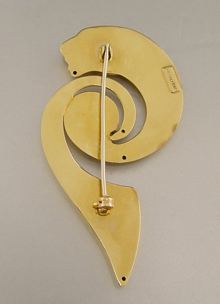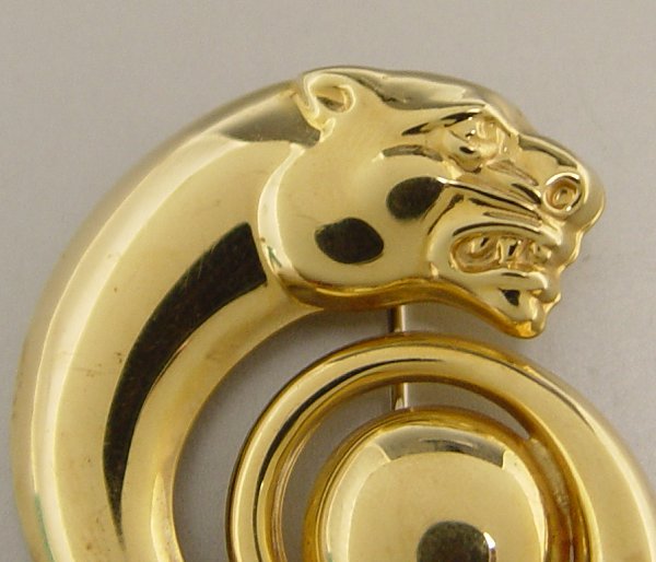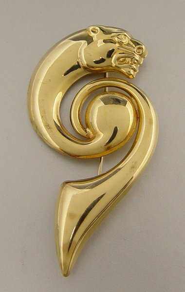 ITALIAN 14KK FIGURAL PANTHER BROOCH: 14K yellow gold brooch depicts a stylized panther. Bar pin closure. Approx. 3.5'' in length. Weight: 9.8 grams.