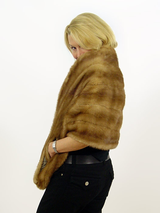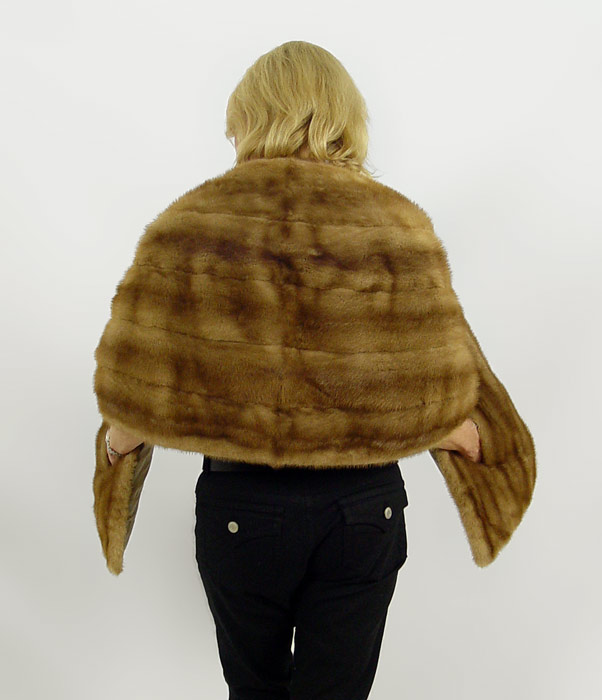 CARAMEL COLOR MINK STOLE: Striplings Furl Salon of Fort Worth label. 19' length in back wraps around to 28'' in the front.