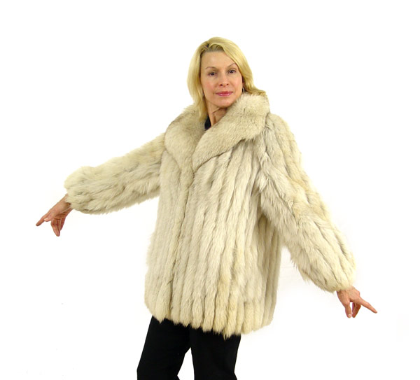 SILVER FOX FUR JACKET: Generous in proportion, 27 1/2''length, 15'' inside 50'' around the bottom. 100% Bromberg lining.