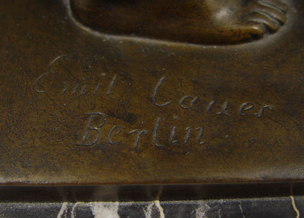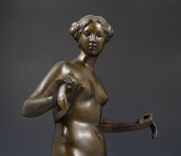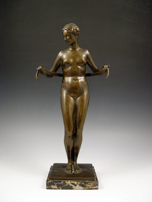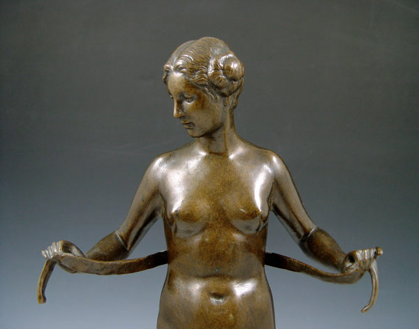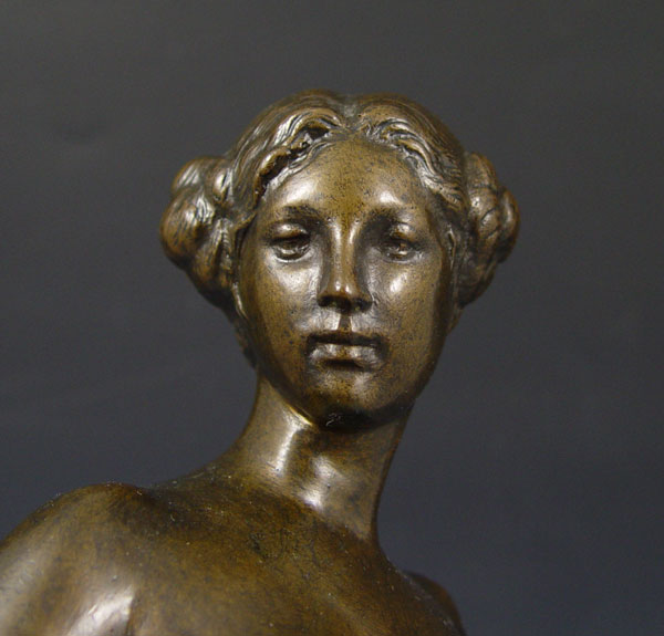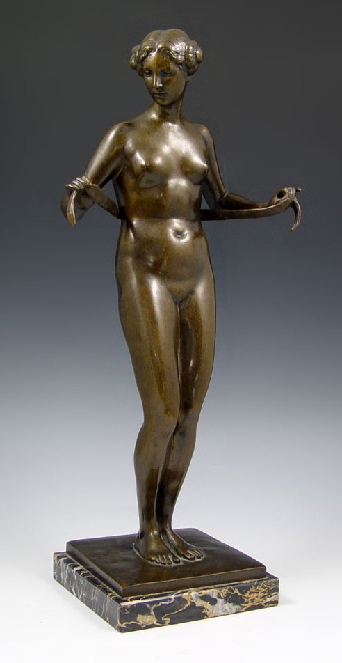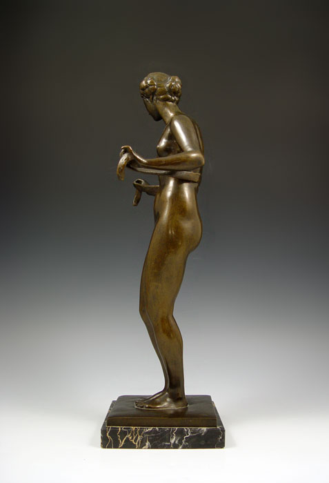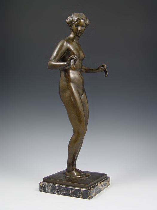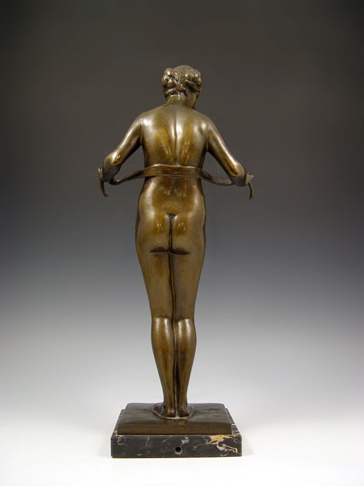 CAUER, Emil, (German, 1800-1867): Nude Woman with Sash, Bronze, 15 1/4'' h, signed with signature, Berlin, standing on polished base, stamped verso Lauenhamer, Bildguess 44.