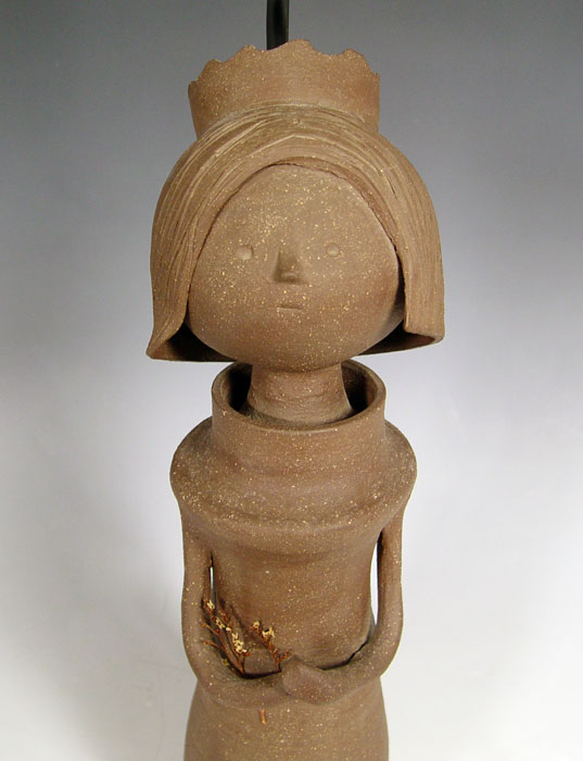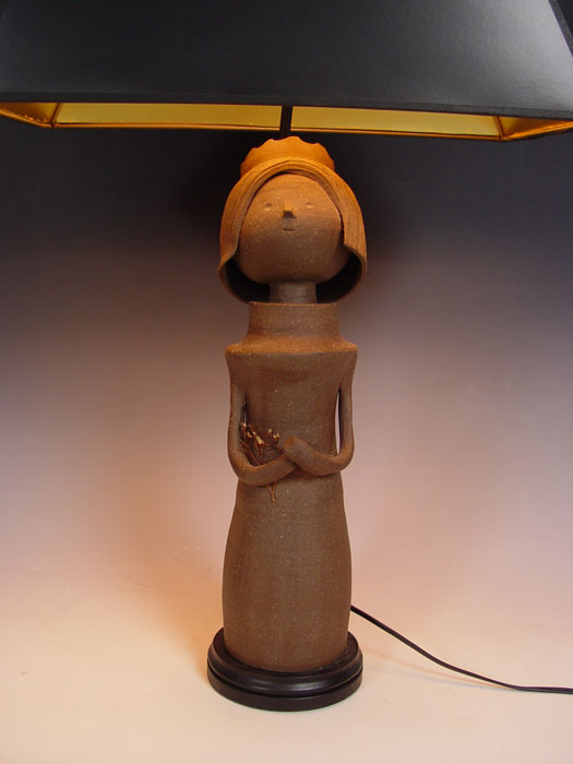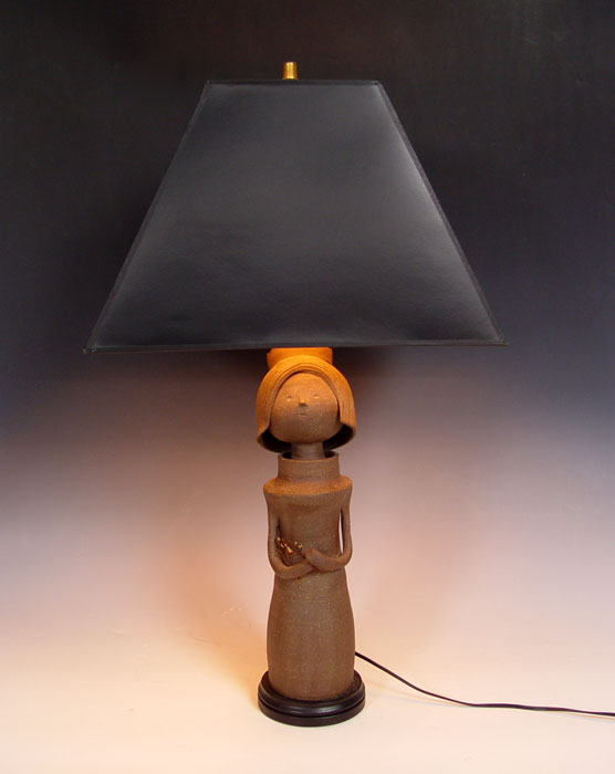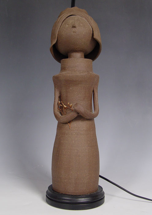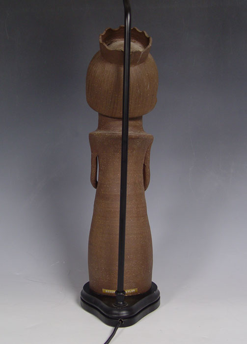 TAYLOR, Rosemary, (American, 20th C.): Figural Pottery Lamp, figure is 16 1/2''h., shipping height is 25'', overall with shade 31'', base measures approx. 6'' x 7''.