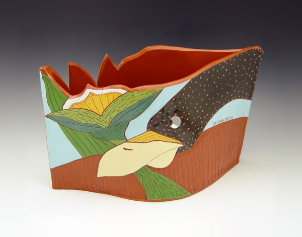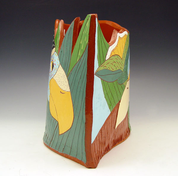 STABLEY, Deb, (American): Bird Face Pot, signed Deb Stabley, 89', 8 1/2''h.