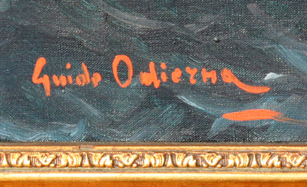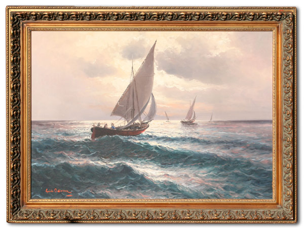 ODIERNA, Guido, (Italian, 1913-1991): Sailing Vessels Offshore, Oil/Canvas, 28'' x 40'', signed, gilded gesso frame with wear, 34 1/2'' x 46''.