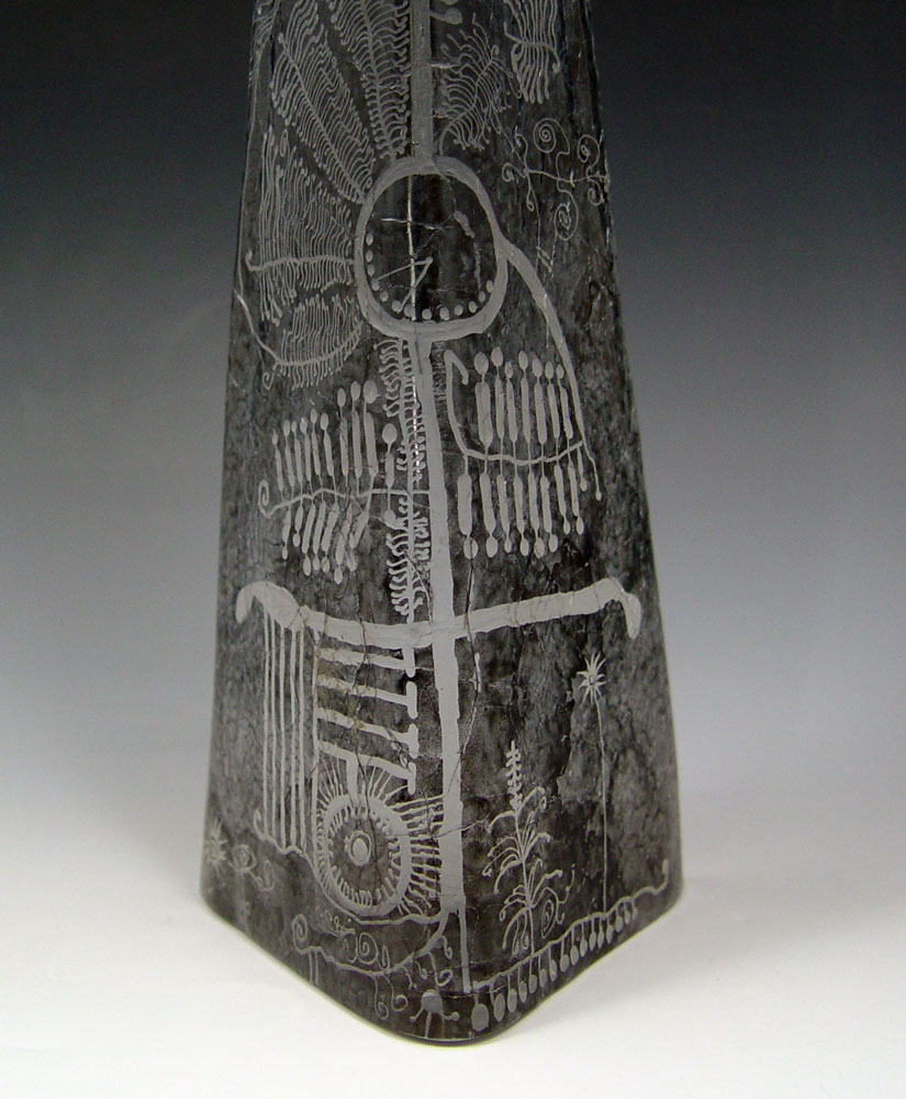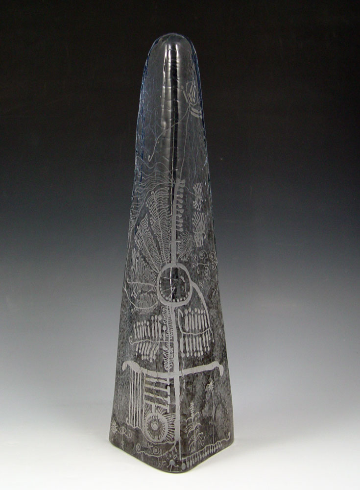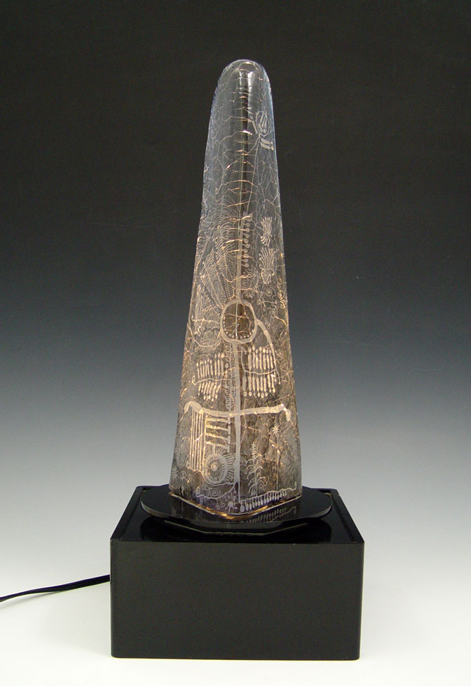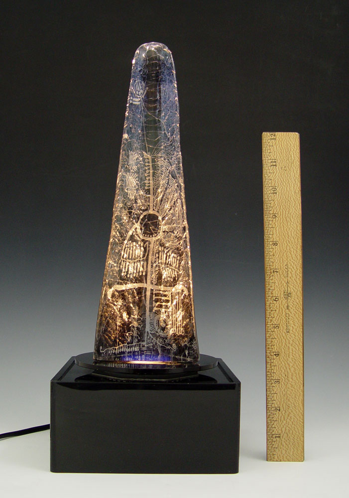 GOREN WARFF GLASS OBELISK SCULPTURE FOR KOSTA: Signed ''Kosta 95691 Warff'', 12 1/2'' tall. Accompanied by the illuminated stand.