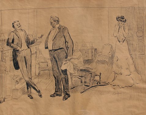 GIBSON, Charles Dana, (American, 1867-1944): Interior Scene, Pen & Ink, 16'' x 20, signed, unframed.